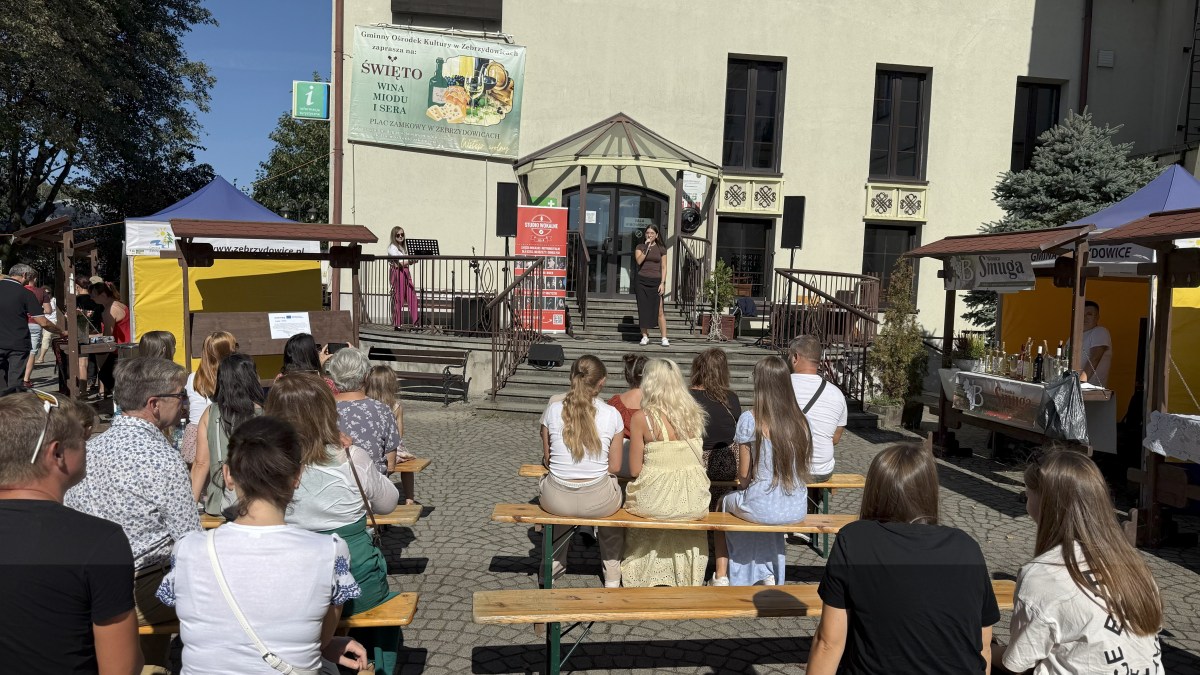 21 września 2025 roku Plac Zamkowy w Zebrzydowicach wypełnił się smakami i muzyką podczas Święta Wina, Miodu i Sera. Uczestnicy kosztowali regionalnych specjałów, słuchali prelekcji o winoroślach i serach oraz bawili się przy koncercie Elżbiety Kożuchowskiej z przyjaciółmi. Najmłodsi korzystali z bezpłatnych atrakcji, tworząc razem z dorosłymi wyjątkową, rodzinną atmosferę. Fot: GOK Zebrzydowice